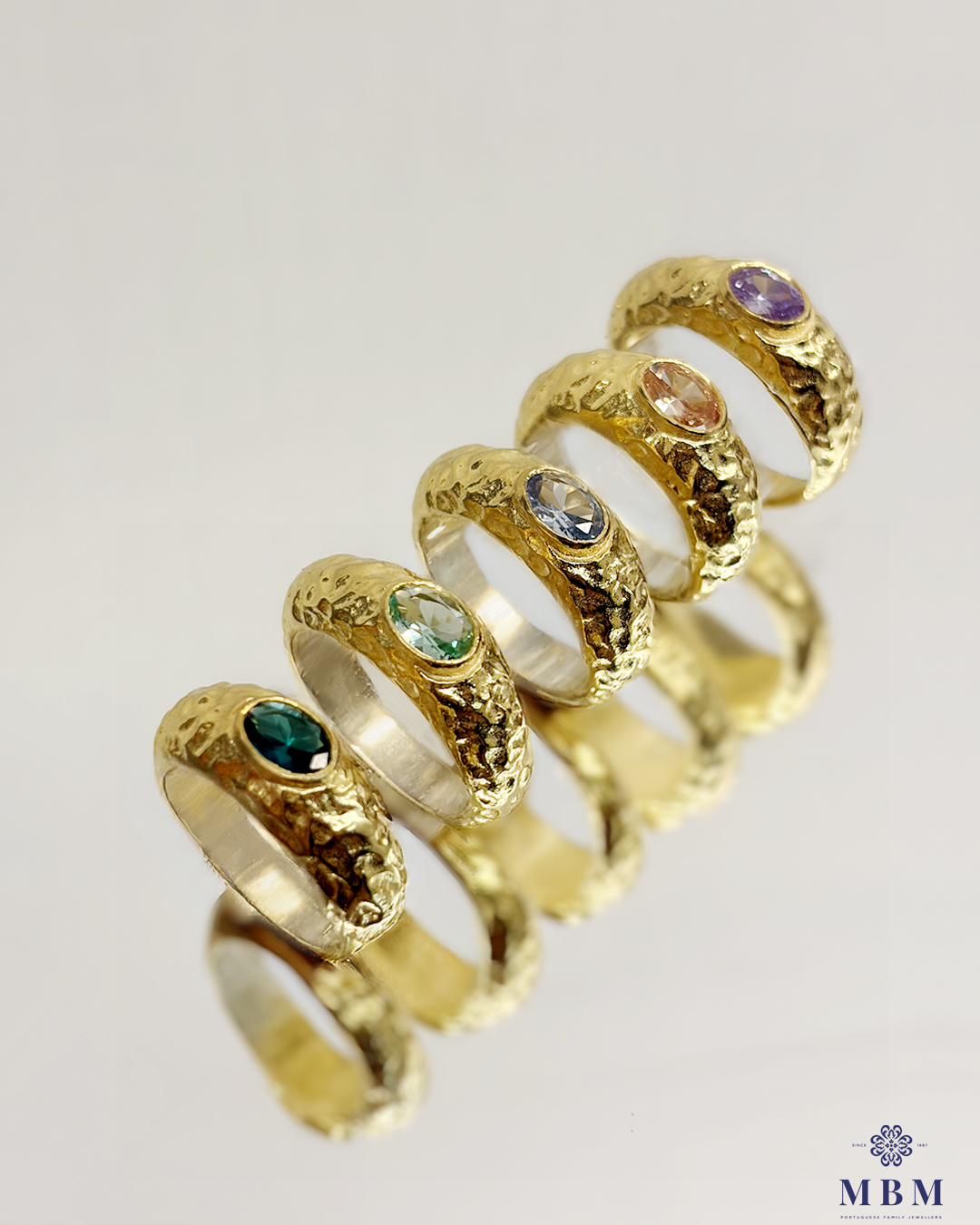Anel largo martelado com pedras